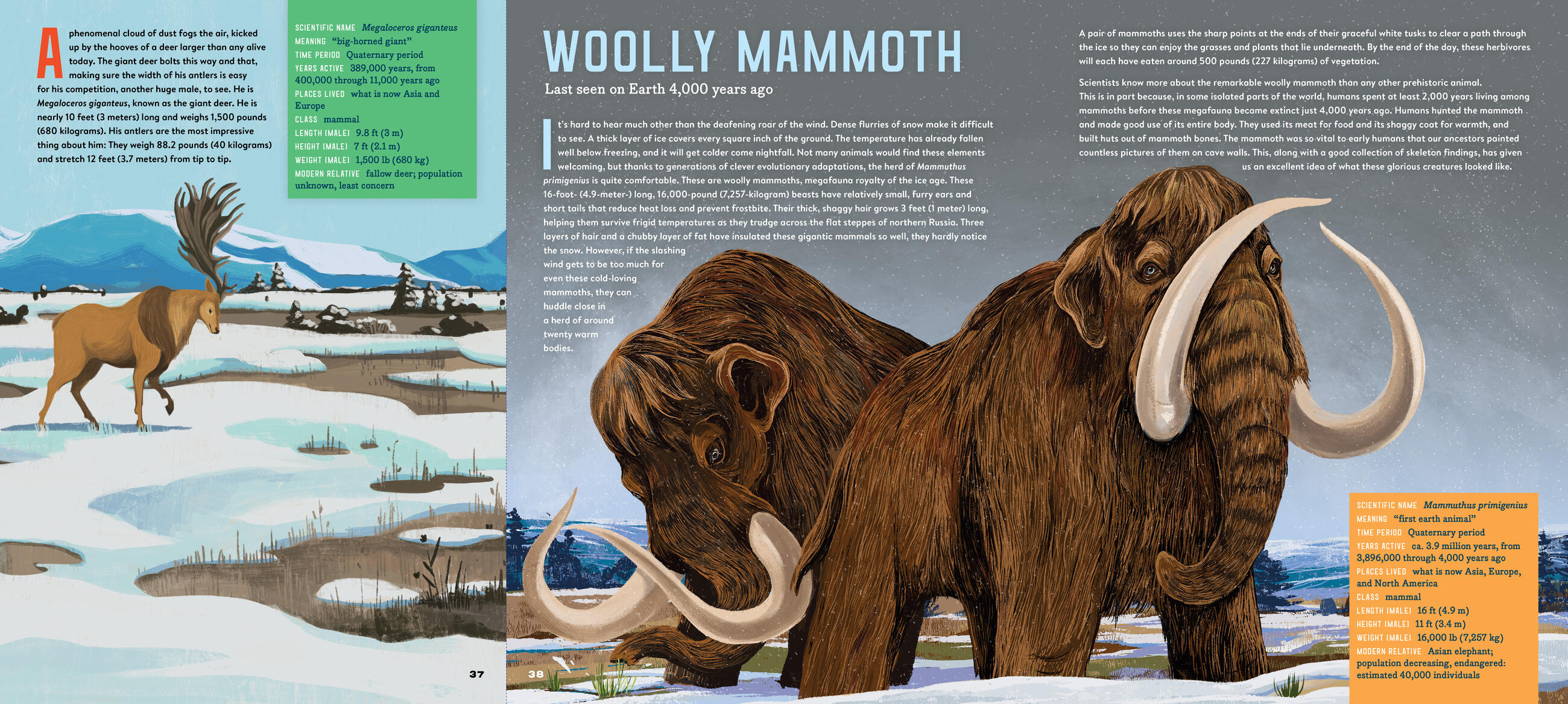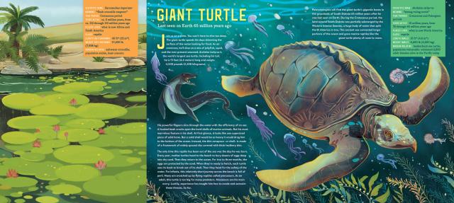 An interactive (complete with gatefolds!), large-format exploration of megafauna, the mostly-extinct class of ginormous animals that thrived during the Pleistocene era after the extinction of the dinosaurs. Meet a giant armored armadillo, a giant sloth, and the three megafauna still found on earth today—African Bush Elephant, Masai Giraffe, and the Blue Whale.