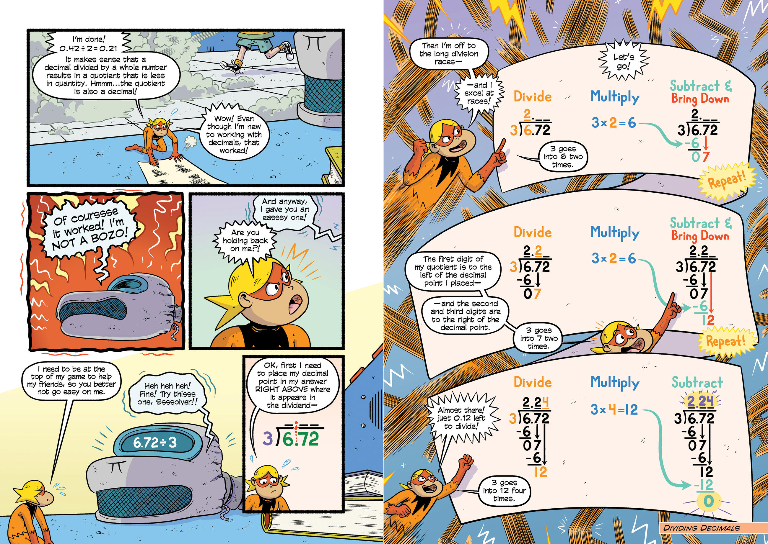 When The Solvers accidentally drink a shrinking potion, the pint-sized superheroes must learn all about fractions and decimals to mix an antidote and stop supervillain Null Void from taking over the city! Throughout the action-packed narrative, clear, step-by-step instructions and illustrated, superhero-themed examples introduce readers to fractions and decimals and then teach how to add, subtract, multiply and divide them, in a super easy-to-understand way.