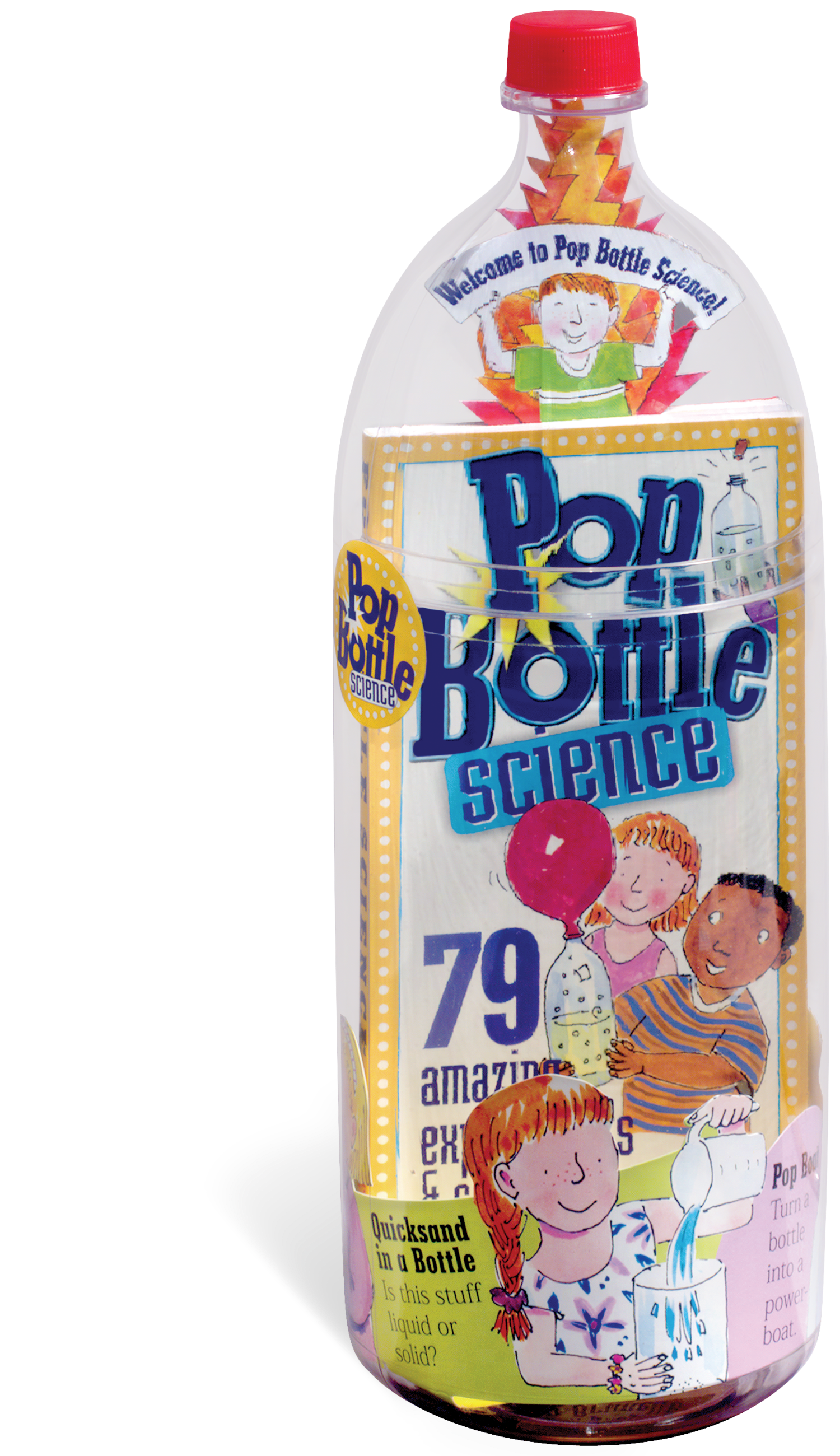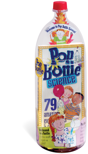 Pop Bottle Science presents 79 easy, hands-on experiments that probe the worlds of chemistry, physics, biology, geology, weather, the human body, and even astronomy! It’s a book and kit, all packaged in a bottle that makes a perfect miniature science lab: see-through, flexible, air-tight when necessary, made out of a durable, shatter-proof plastic and designed with a removable top that doubles as a funnel.