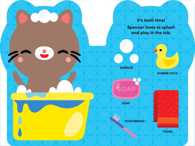 Spencer is a sweet little kitten in a board book shaped just like him! Bright, bold illustrations, simple text, and vocabulary labeled on each page help toddlers with language acquisition.
