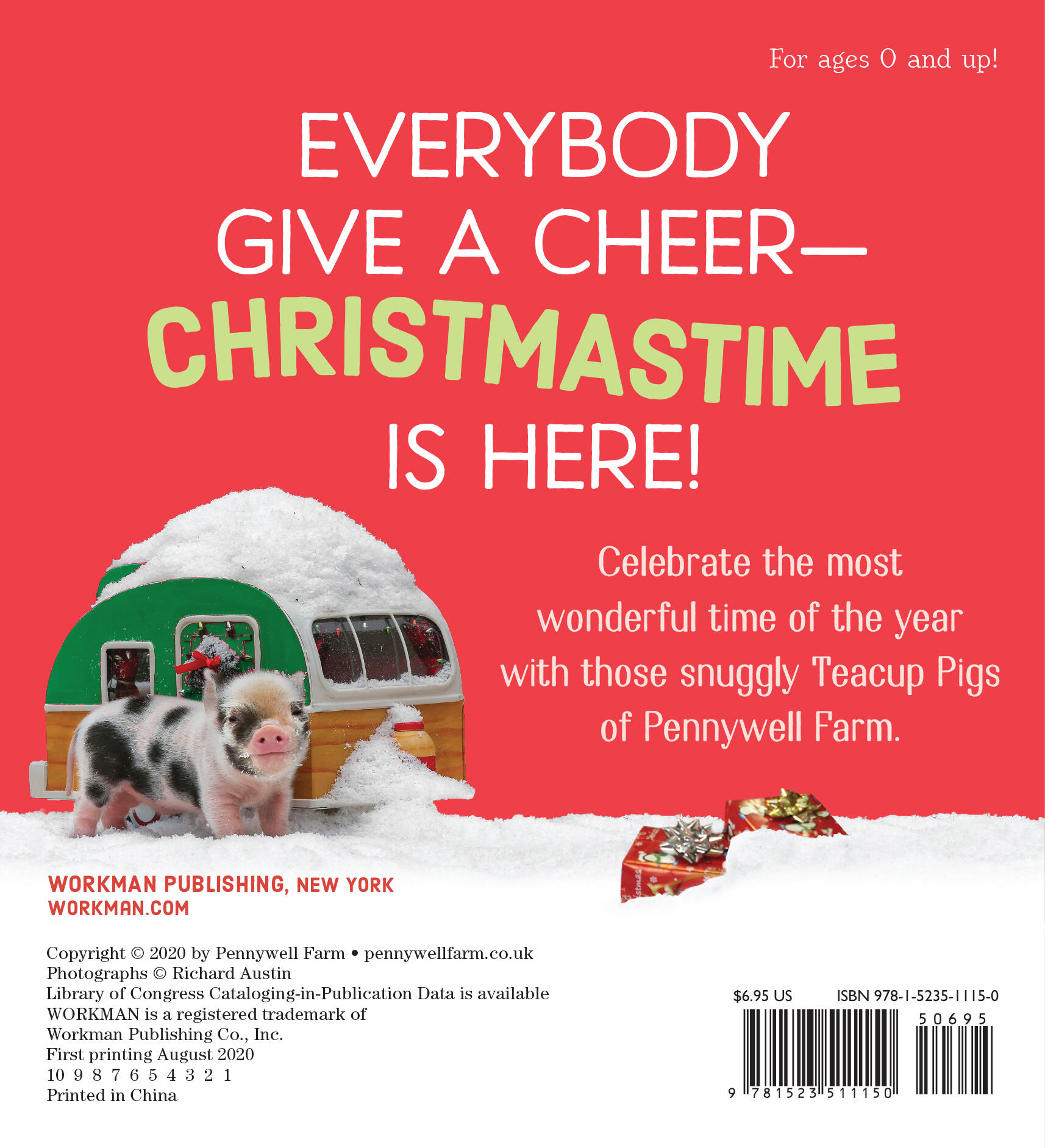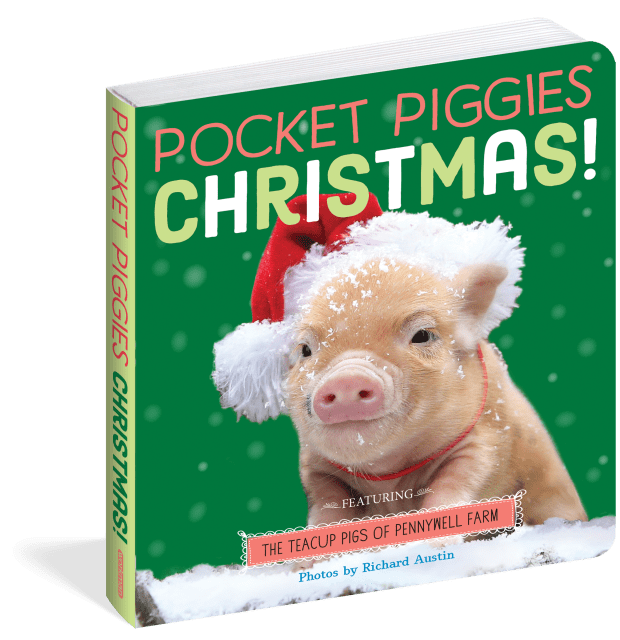 Celebrate the most wonderful time of the year with the adorable Teacup Pigs of Pennywell Farm! These bright and charming photos feature the pigs playing in the snow, decorating, and snuggling up for the holidays. A perfect way to introduce babies and toddlers to the joys of the season.