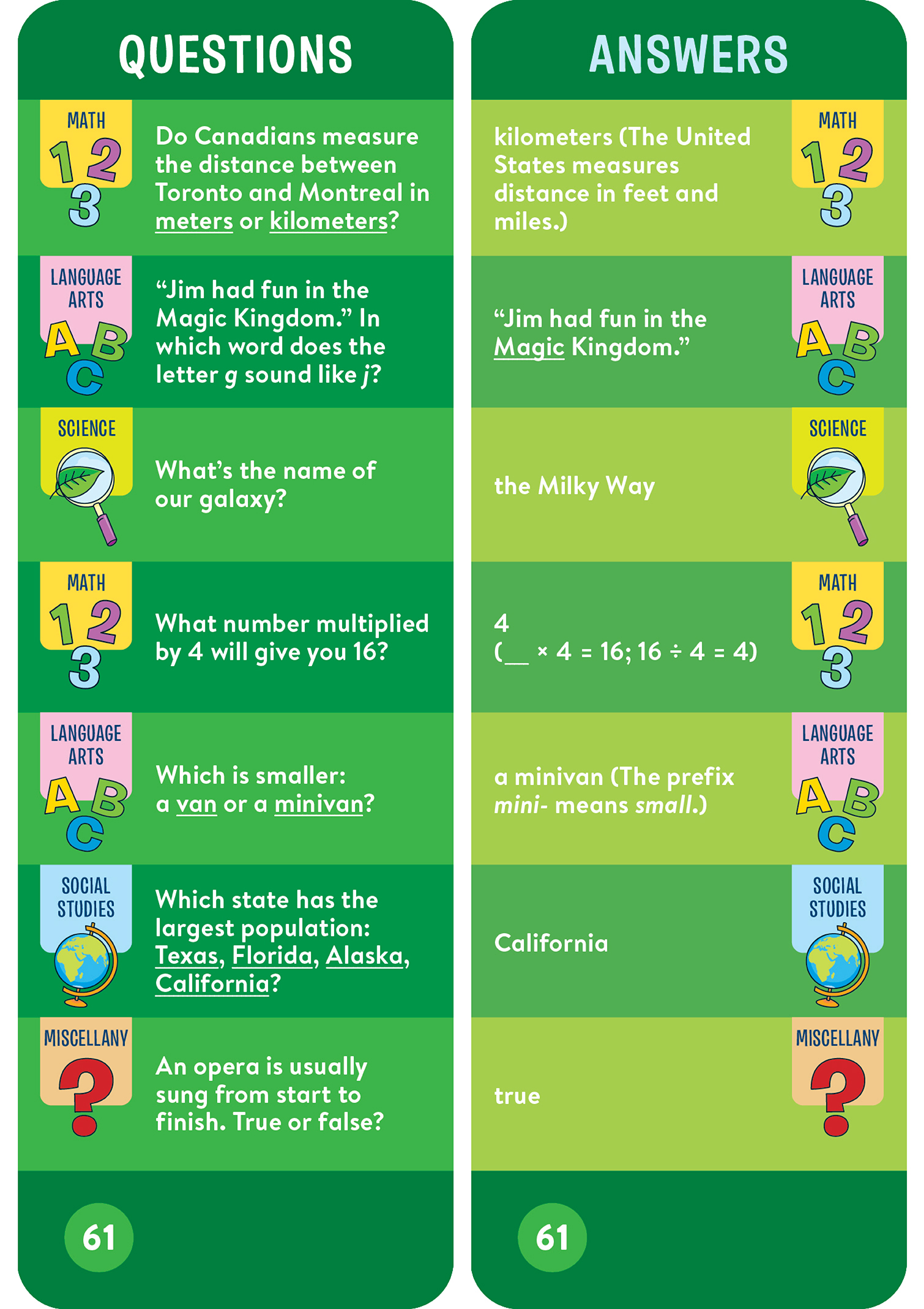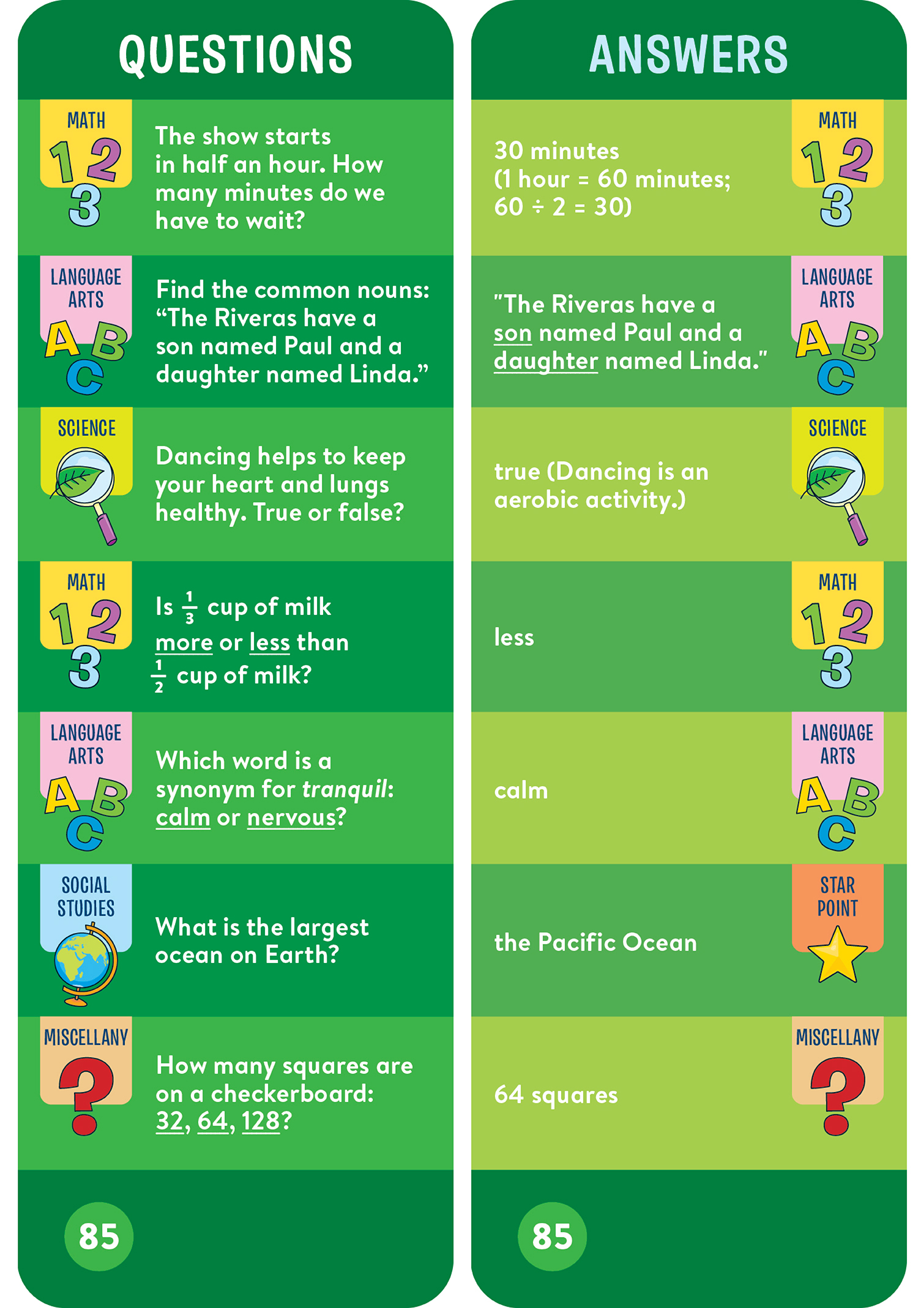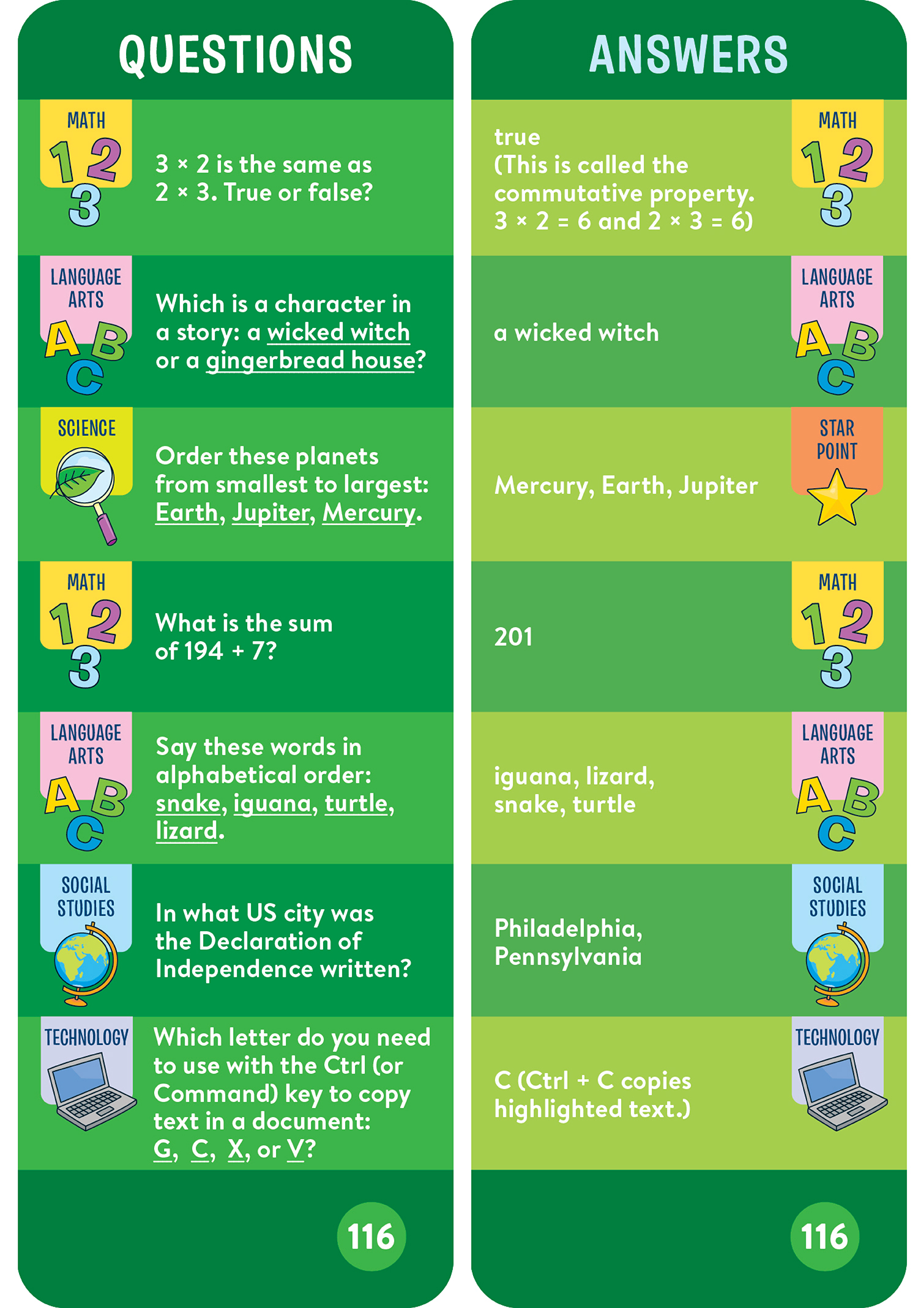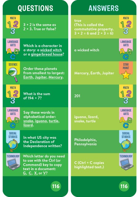 - 1,000 questions and answers covering math, language arts, science, and more