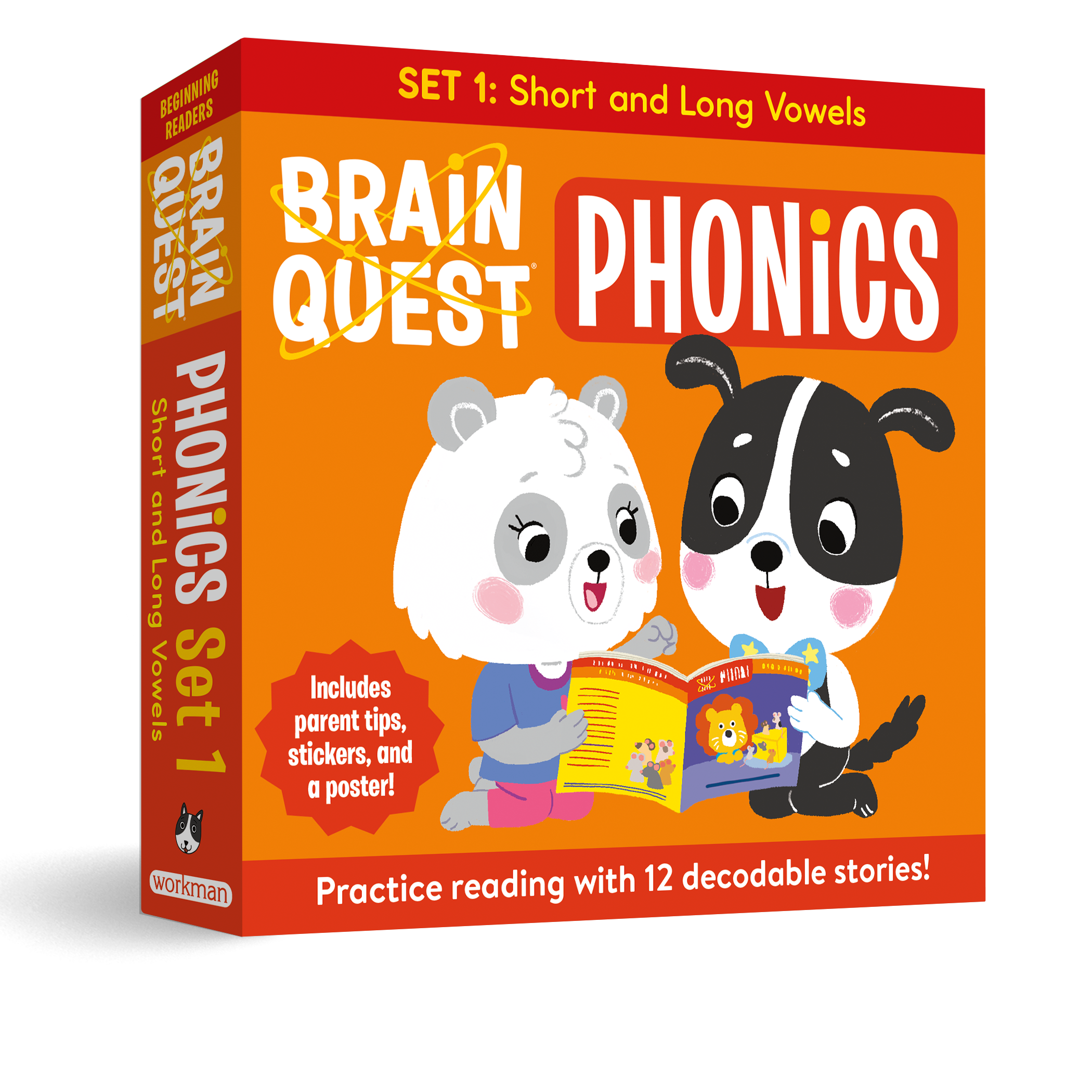 With cute art, silly stories, and simple text, Brain Quest Phonics Readers contain 12 adorable books written to help kids learn to read. Reviewed by a literacy expert, this box set contains decodable fiction and non-fiction books focused on two fundamental phonics skills: short and long vowel sounds. These fun, engaging stories feature familiar characters like the Brain Quest mascot Gizmo, Amanda the Panda, and Ryan the Lion, and build on the concepts introduced in the Brain Quest Phonics Workbooks (pub. May 2025). As with all Brain Quest products, children celebrate their literacy success with the included stickers and progress map. Parent notes at the beginning and end of each book provide targeted support for caregivers and teachers.