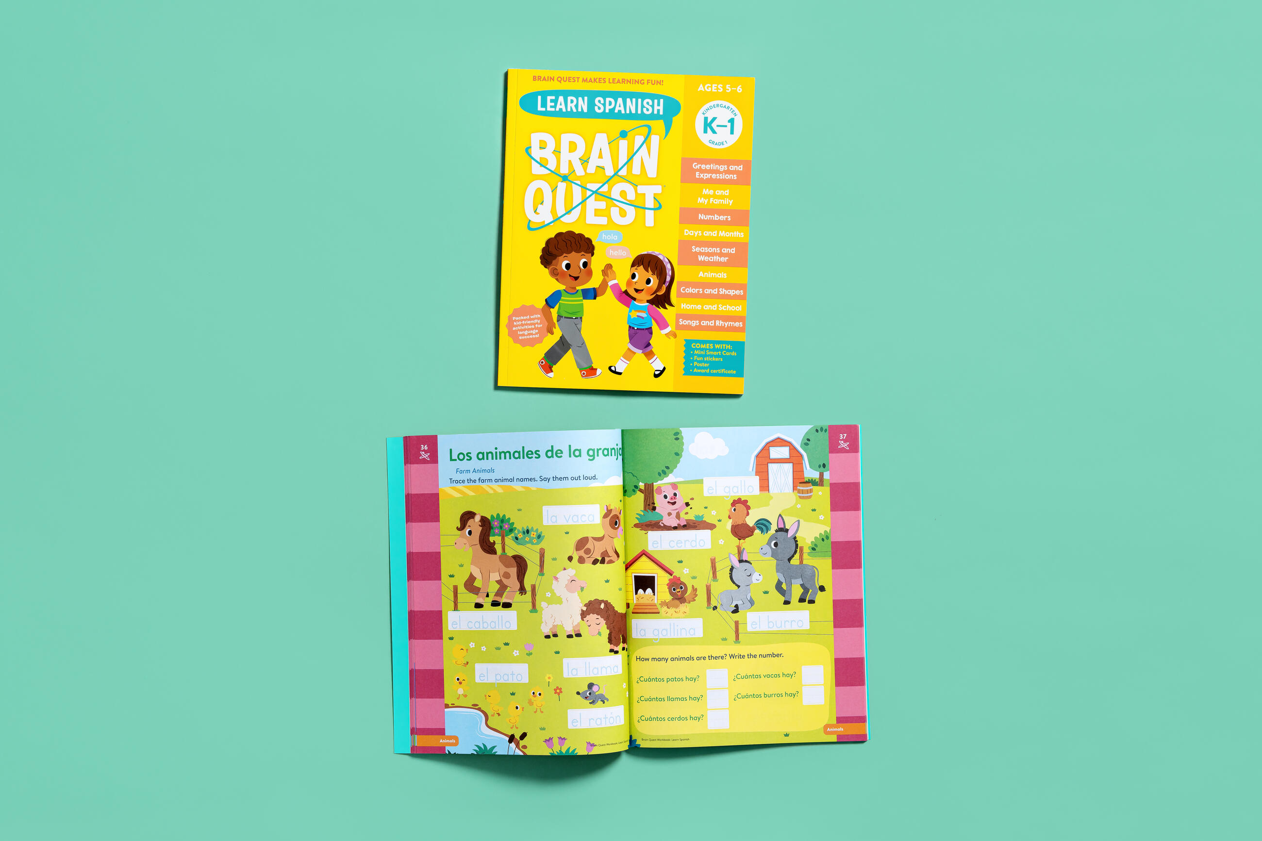 Expertly vetted by Spanish educators to compliment school and home use, each key concept is introduced with helpful visuals to set students and parents up for success. Brain Boxes provide extra support and context, plus a poster and stickers are included to make the learning fun!