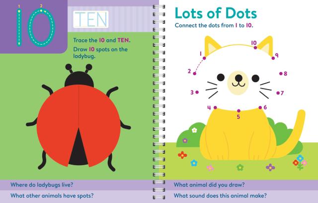 The ultimate write and erase workbook, with tons of curriculum-based activities and exercises focusing on letters, numbers, colors, and shapes. Includes a removable double sided white board and dry erase marker (attached in spiral binding).