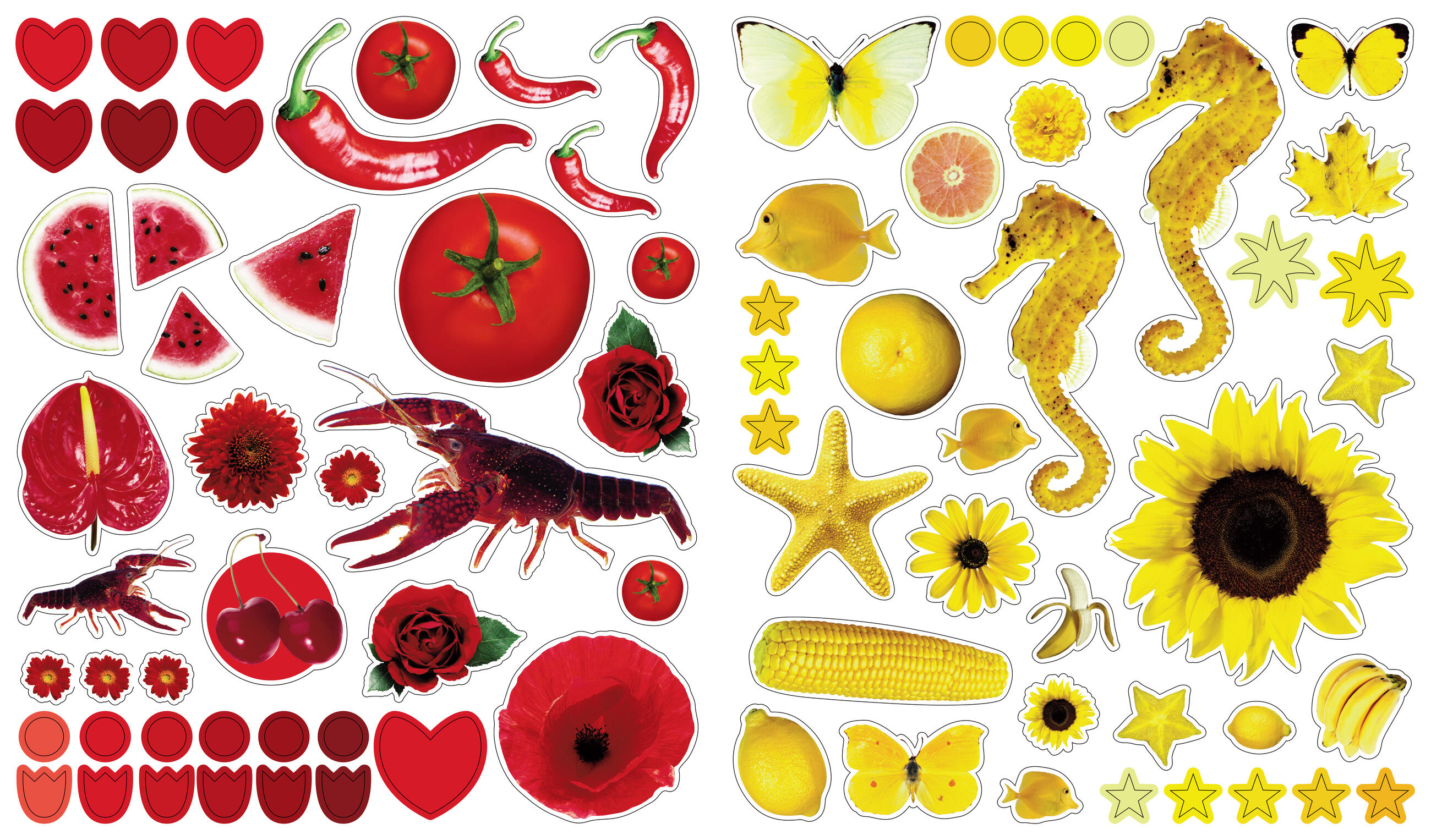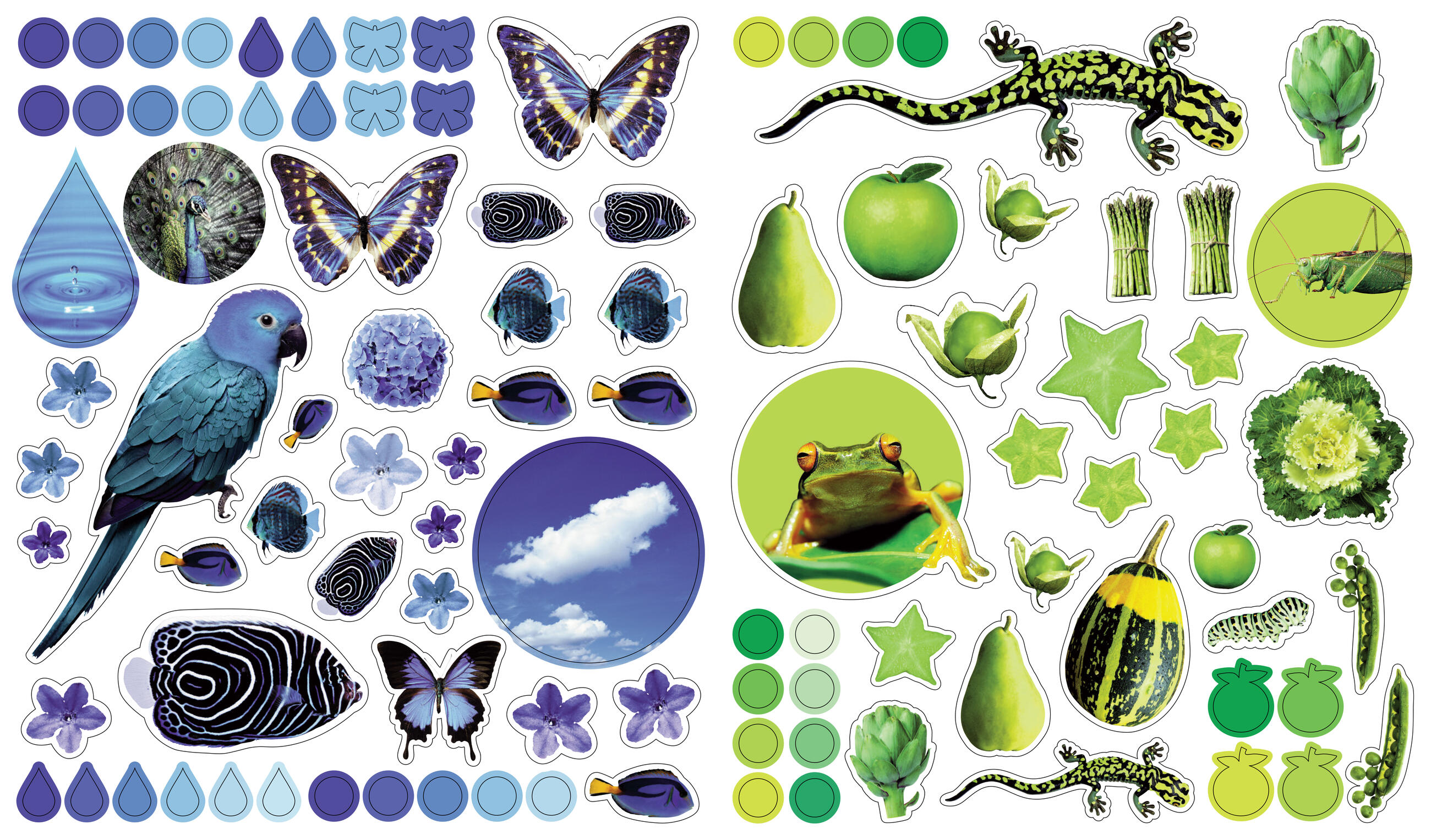 Containing stickers in every color of the rainbow, each page is full of vibrant, photorealistic images sorted by color (orange is for tigers, clownfish, pumpkins, parrots, and carrots!). Whether on windows, notebooks, lunch boxes, or scrapbooks, these peel-and-place stickers are perfect for creating your own work of art anytime, anywhere, and are designed to be stuck on, peeled off, and stuck on again without tearing or losing their “stick.” The books’ inside covers are glossy illustrated backgrounds on which kids can create lively and original sticker scenes―and then change them whenever they like.