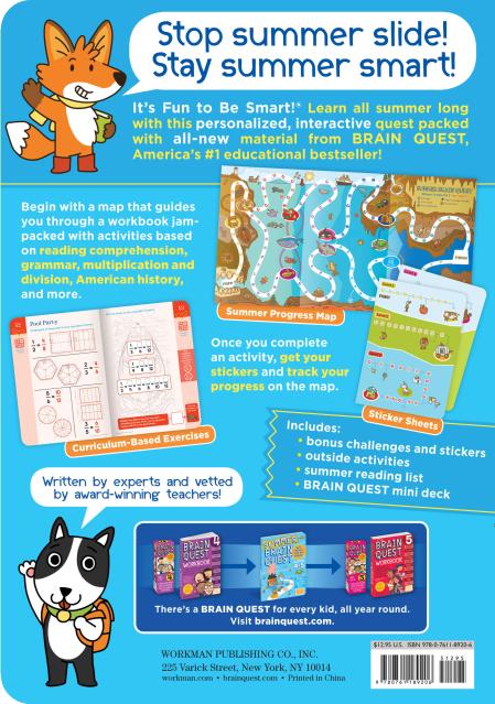 Once you complete an activity, get your stickers and track your progress on the map! Loved by kids, teacher-approved, and parent-trusted, this Summer Brain Quest Workbook also includes bonus challenges and stickers, outside activities, a summer reading list, a Brain Quest mini deck, and more.